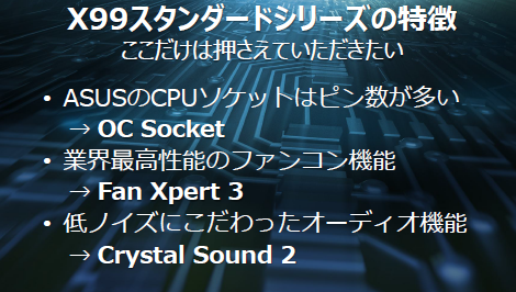 後日運営様から送っていただいた追加資料によるとASUS,X99スタンダードシリーズマザーは