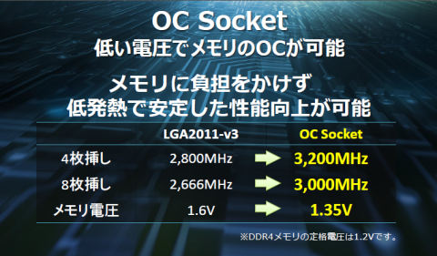 通常2011-v3よりピン数が多いらしいです。(OC Socket)