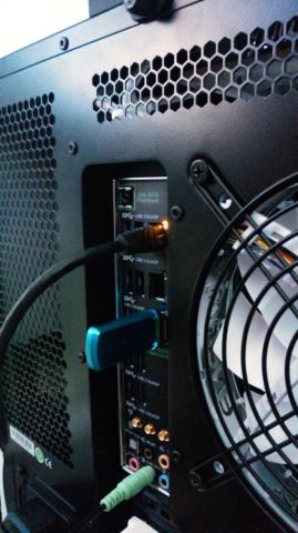 後はマザーの後ろの、ここに挿せって表示があるところに挿して