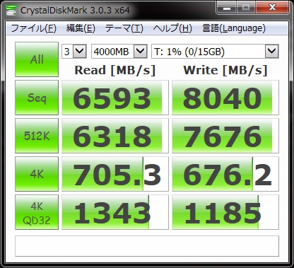 速度については、既にM.2-SSDの項目でベンチマークを掲載済みだが、こちらでも参考用として載せておく。