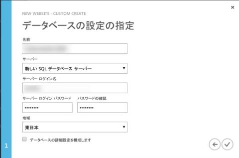 サーバーログイン名とパスワードは、SQLデータベースにアクセスするユーザ名とパスワードなので適宜入力してください。
