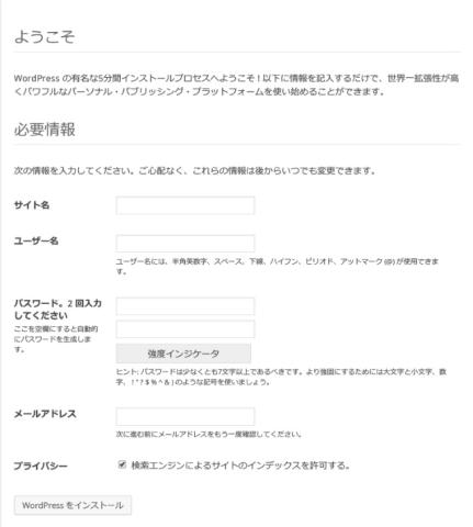 適宜入力して「Wordpressをインストール」ボタンをクリックします。
