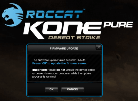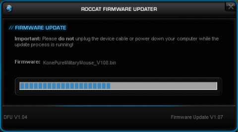 アップデート中はマウスのケーブルをPCから抜いてはいけません。