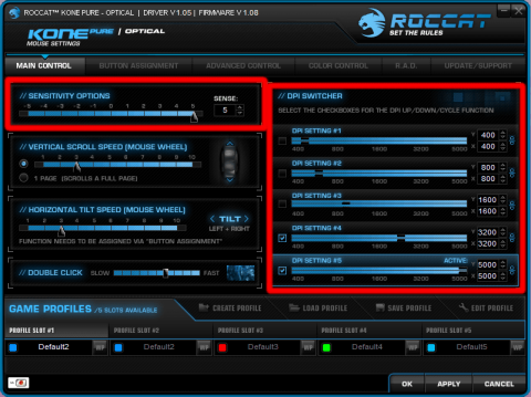DPIの方も3200DPIと5000DPIを残してチェックを外して無効化してあります。