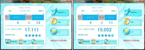一応「BootRacer」で確認してみたところ、毎回起動時間変化するので正確にはなんとも言えませんが、2秒程の違いがありました。