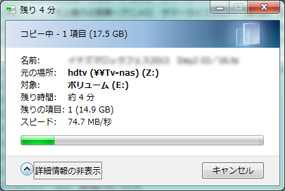 丁度、TV録画専用PCに1TBの録画ファイルがあるので、その中から1日最大書き込み 50GBの4倍にあたる、約200GB分の録画ファイルを流し込んでみたいと思います。