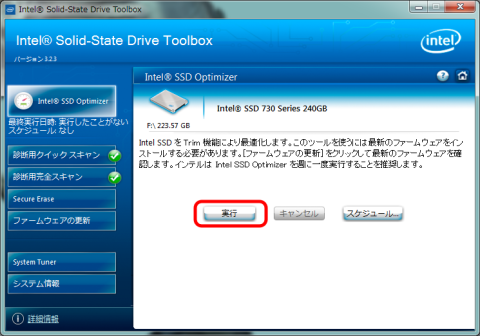 定期的にIntel® SSD Optimizerを実行しておくと、気分的に良いですね。
