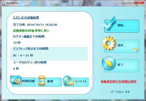次にPCの起動に要する時間の比較、これもよく比較に使用している測定ツールの