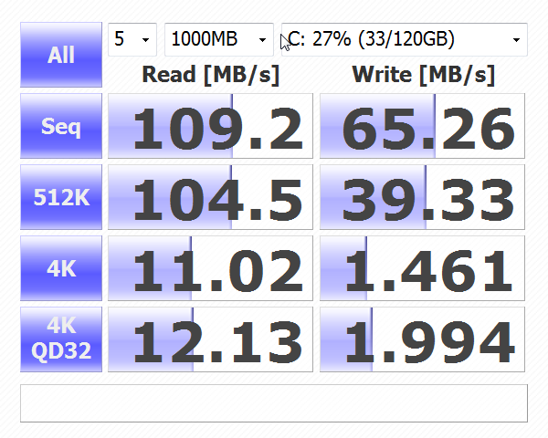 折角なので、ThinkPadのローカルディスクの計測結果を画像添付します。