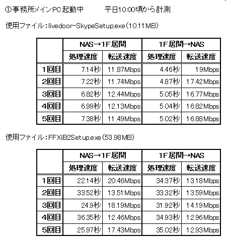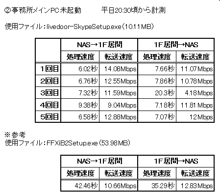 次のコメントに、1階居間と事務所間でのファイル転送速度を計測した結果を示します。