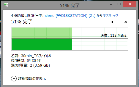 次に8GBのファイルを DS415+ ⇒ メインPC にコピーしてみた。