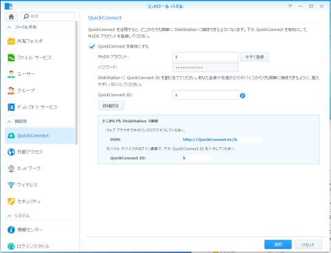 以上を入力し「送信」を押すとSynologyのMyDSセンターに登録される。