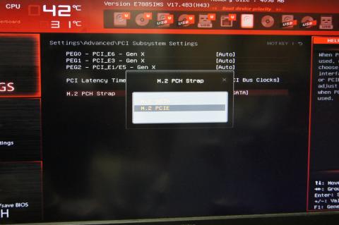 PCIE仕様のM.2SSDを積む場合はBIOSをPCIEに切り替える必要があります。