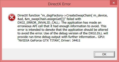 なんかDirectXのエラーが出て強制終了しました。