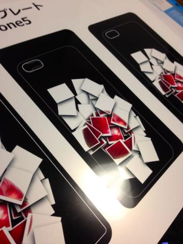 印刷が終わったら、表面のクリアシートを貼って、カット、貼り付けとなります。