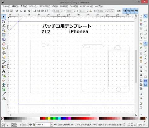 具体的な操作方法は割愛しますが、CADの要領でカットラインを作成します。Inkscapeでは、ミリ単位での実寸印刷が可能なので、カットラインを作っておけば、何度でも再利用できます。(保管形式はSVG形式)