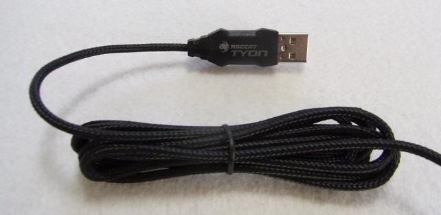 ROCCAT社製品のUSBケーブルは独自の形状をしており、製品名が刻印されている。