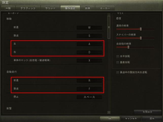X-Celerator、Fin Switchに前後左右への移動キーを割り当てたことで、マウスのみで車両を移動操作できるようになった。