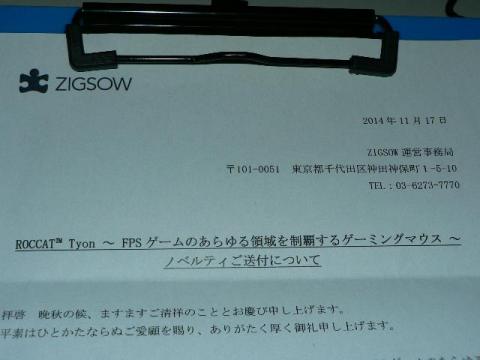 このゲーミングマウスのノベルティだそうで、ありがたく頂戴いたしますm(_ _)m