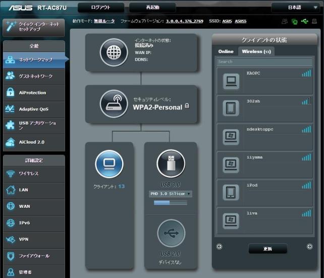 RT-AC87Uは、ASUSWRTダッシュボード管理画面から設定します。グラフィカルでわかりやすい管理画面になっています。私には知らない語句がたくさんあるので検索しながらになりますが(;^ω^)