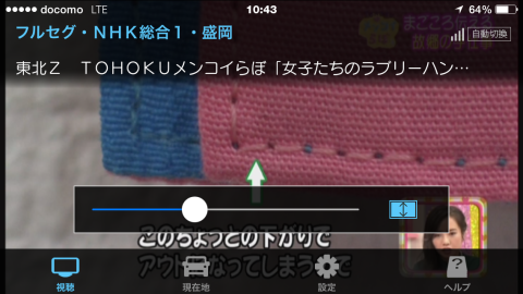 画面を指でスライドさせるとチャンネルを変える画面が出てきます。。