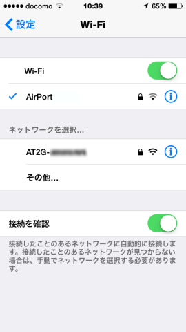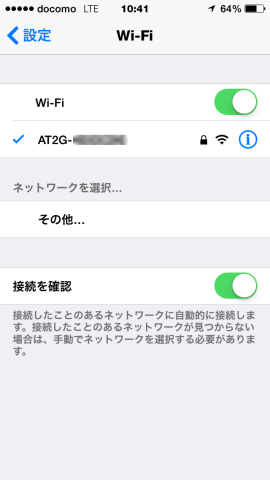付属のSSID/KEYシールに記載されているSSIDの文字列をタップします。