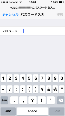 付属のSSID/KEYシールに記載されているKEYの文字列を入力します。