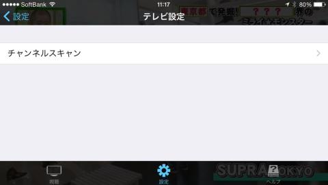 視聴地域の切り替えは、「設定」→「テレビ設定」→「チャンネルスキャン」と進む。