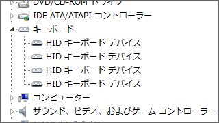 するとデバイスマネージャーでは次のようにキーボードが4つ出てきます。これは「キーの同時押し(26キーロールオーバー)」に対応するための仕様です。