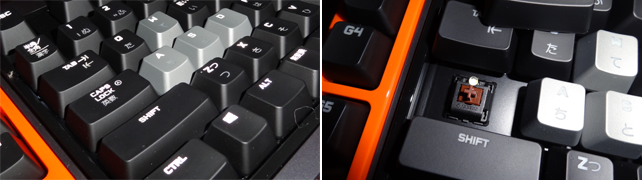 G710+はCherry製の茶軸キーボードで、茶軸は青軸や黒軸など他の軸の中では一番軽いそうです。確かに押し込む力はRT23とさほど変わらず、違和感はあまりなく移行することができました。