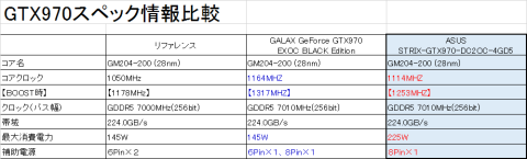黄色網掛け部分がGTX970のスペックとなります。