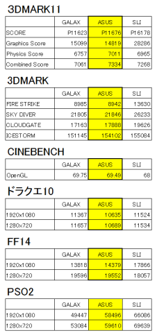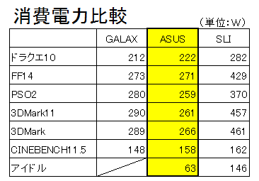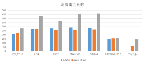 消費電力とベンチ結果にSLIのものを加えた状態で再度掲載です。
