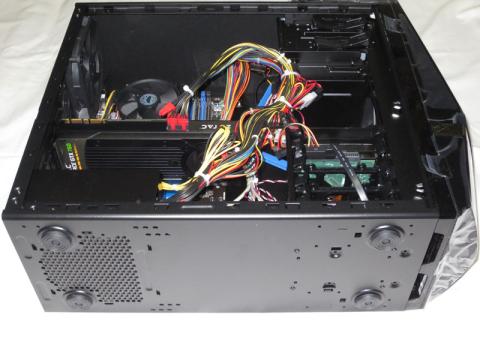 PCケースはG-Tuneオリジナルで小型のATXタイプ。ケーブル裏配線に対応していないなど不満な点もありますが、ゲーミングPCらしいフロントデザインと天板にI/Oポートやカードリーダーを配置するなど使いやすさも考慮されています。エアフローは標準的ですが搭載されているGPUのZOTAC GeForce GTX760 2GB DDR5 (ZT70403-10P)はリテールタイプの製品で外排気のため、長時間PCを稼動させてもケース内に熱が篭りにくいのも良いです。