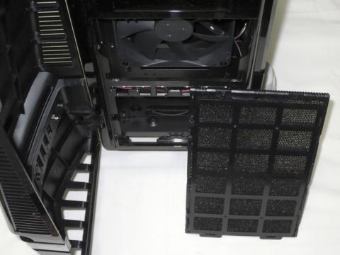 クーリングファンについては、吸気側に12cmファン(1個)と3.5インチシャドウベイ側に1個追加できるようになっています。(*ファン固定用ネジは付属していません。)