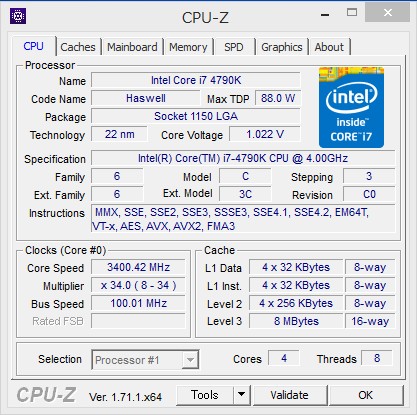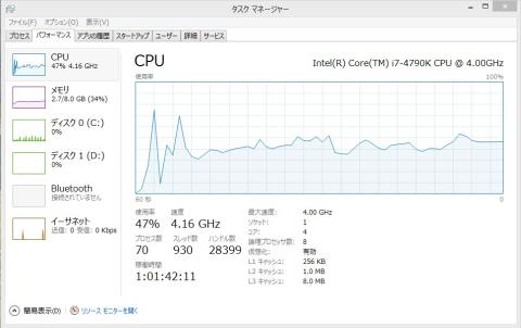 表示を変えると4Core 8スレッドの状態を見ることができます
