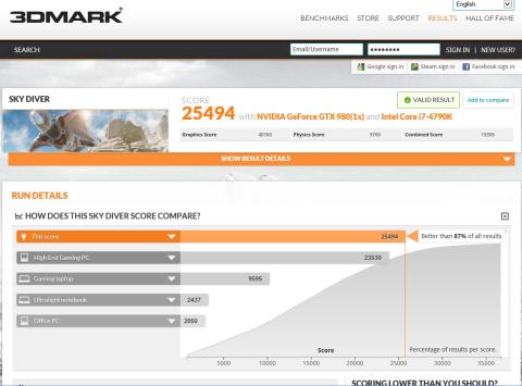 FireStrikeの結果 (オレンジのバーグラフで結果がでます)