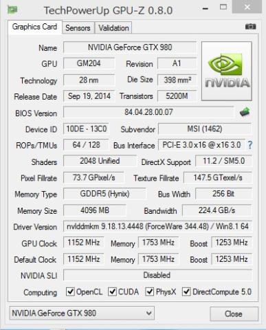 GTX980は何の苦労もなく最高点に到達します