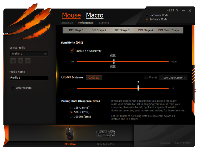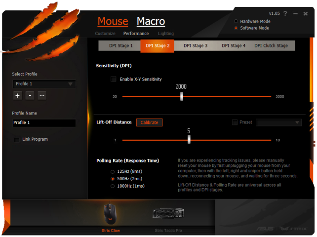 500hz固定、2000dpi、Lift-offDistance"7"、preset"チェックなし"