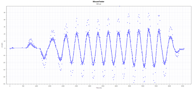 ポーリングレートが安定していないので、ポインタ飛びのようになっている。