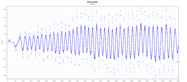 0点の時点で急に横にずれているように見えるのは、デザイン柄に反応してY軸方向にズレが生じているからです。この特性は手持ちのマウス全てで出ました。