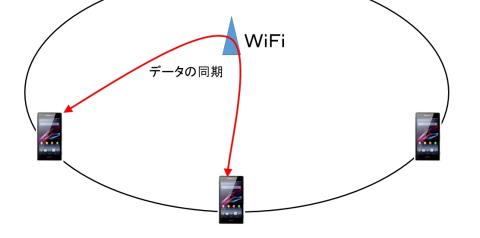 WiFi接続されている同じネットワーク内にあるスマホを1対1で同期することができます。