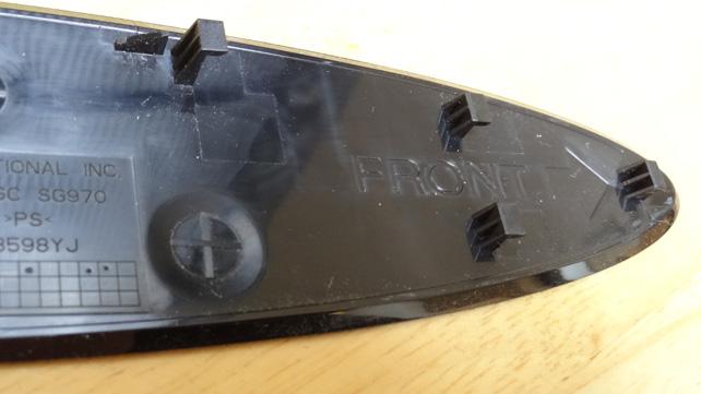 蓋の裏には「FRONT⇒」という文字があるので、その矢印の方向が前面にくるように、スライドさせて閉じてください。