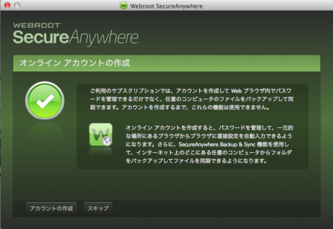 設定が終わりWebroot SecureAnywhereがこのコンピュータを保護しました