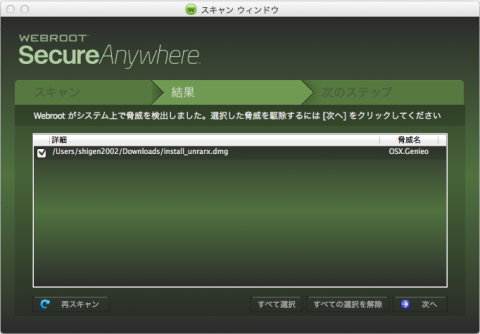 インストールして何度かスキャンしてみましたが、脅威は検出されませんでした