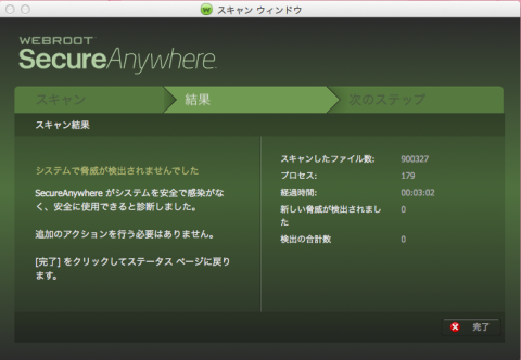 Mac Book Airで使ってみた感じでは、他のアプリケーションを使いながらでも、重さを感じずに脅威の駆除が出来ました。ただ一度、予期しない理由で終了したのが気になります