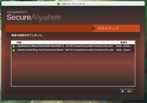 スキャン途中でこのような通知も届きましたが、そのままスキャンを続けます