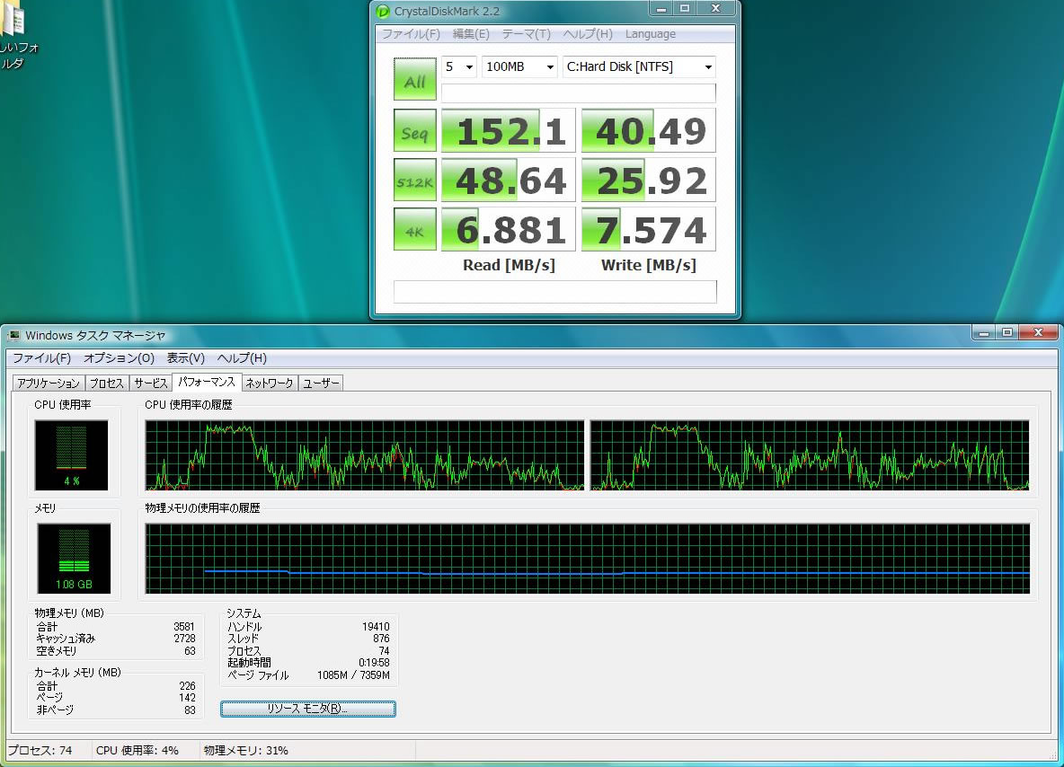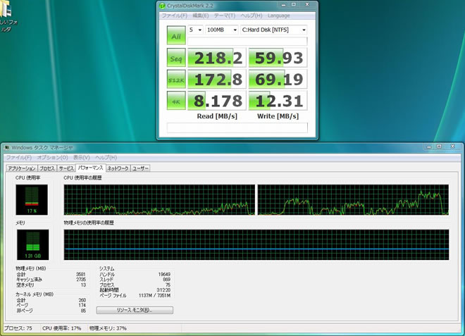 SSDだと計測開始押したとたんににCPU使用率が50%位に跳ね上がります…
