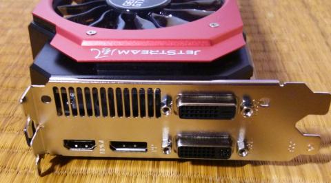 ミドルクラスにしては結構大きめの冷却ファン。その分本体も大きめ。ちなみにNvidiaのグラフィックボードはGPU BOOST2.0という温度と電力に余裕があれば定格以上にオーバークロックする機能が標準装備なので冷却能力が高ければ高いほど圧倒的に有利。