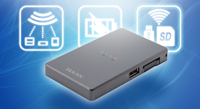 また、バッテリー内蔵のモバイル無線ルーターとしても使用でき、ホテルなどにある有線LANをケーブルで接続するだけで無線化することができます。自宅の無線LAN環境をWi-Fiリピーターで中継しながらメディアにアクセスできるWi-Fiリピーターモードや、手持ちのメディアをNAS化して既存の無線LANネットワークで使えるSamba/FTPサーバ機能も搭載し、様々なシーンでのデータファイルのやり取りをサポートします。