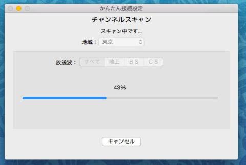 チャンネルスキャンはそこそこ時間がかかります。地域と放送波を選択して実行します。